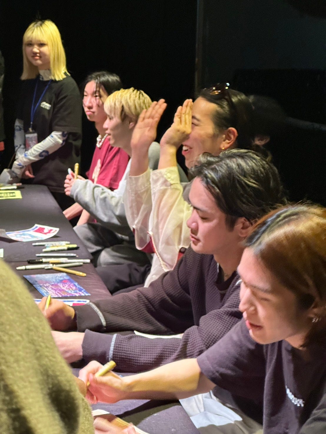 原本對滿額1500購買周邊才能簽售的限制覺得好坑,完全沒興趣,但到表演後段被吸住……一結束跑去外面領錢,還抓陌生人一起湊1500,就為了能和他們互動及簽名…….